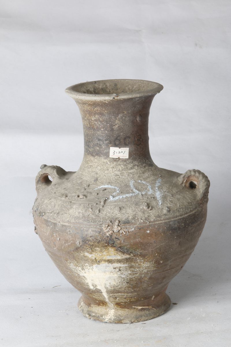 概述:汉双系波纹釉陶壶外口径11 3内口径5 8底径11 2 腹径21高26(单位:cm)