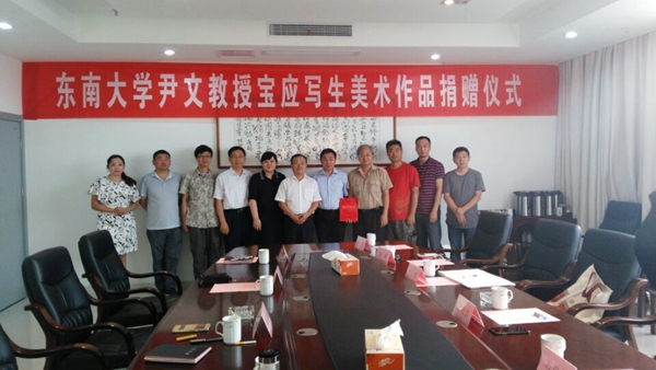 7月27日,“东南大学尹文教授宝应写生美术作品捐赠仪式”在宝应县文体广新局隆重举行,宝应县副县长杨洪国、高敏,县文体局局长谭炳才,副局长朱峻岭、顾浩,东南大学艺术学院院长王廷信,宝应博物馆馆长倪学萍等参加了捐赠活动。